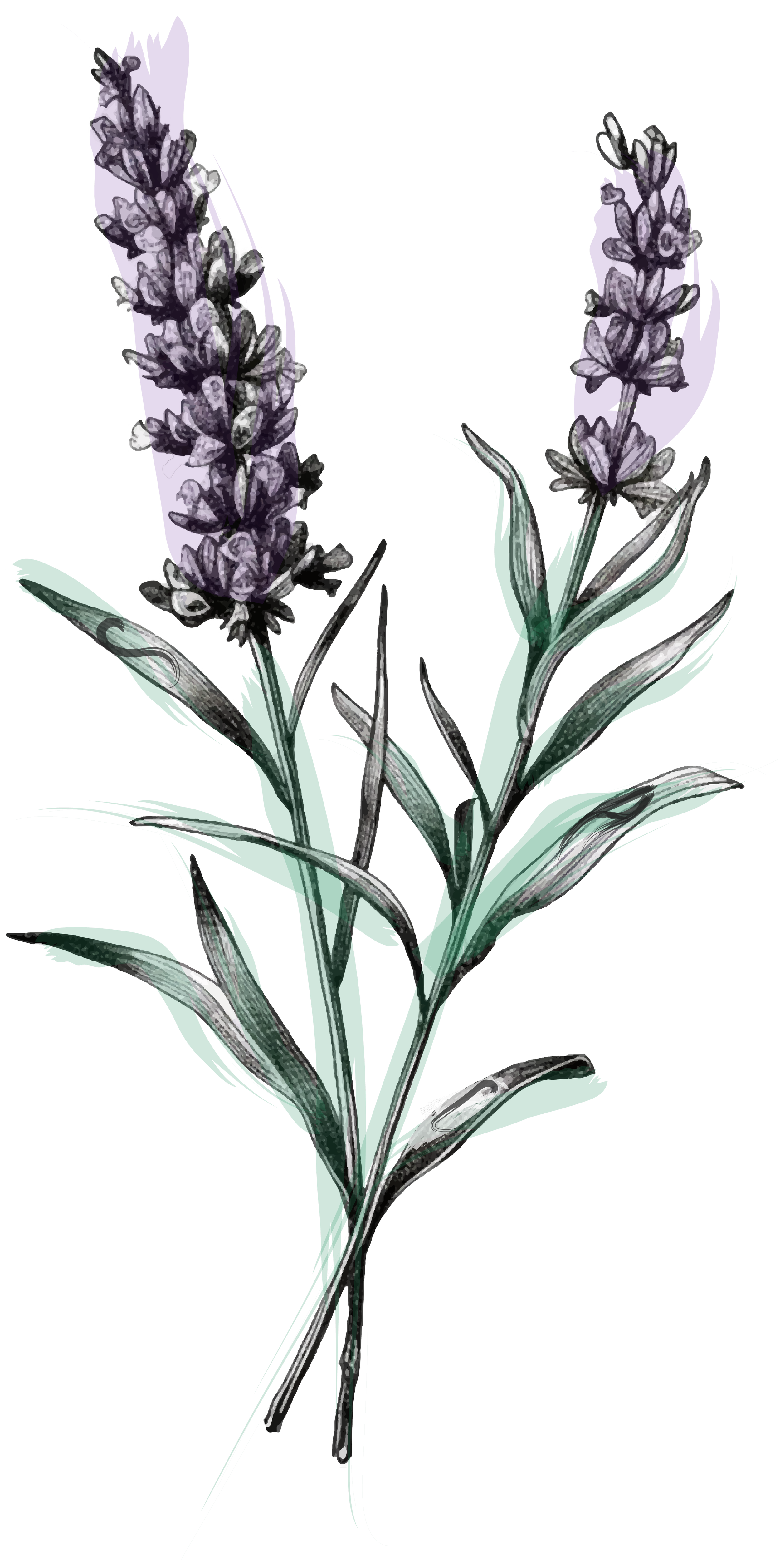 The theme was an illustrative lavender tattoo design, that included three letters of the clients children and grandchild.